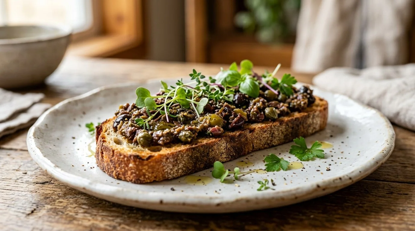 EASY OLIVE TAPENADE ON SOURDOUGH TOAST